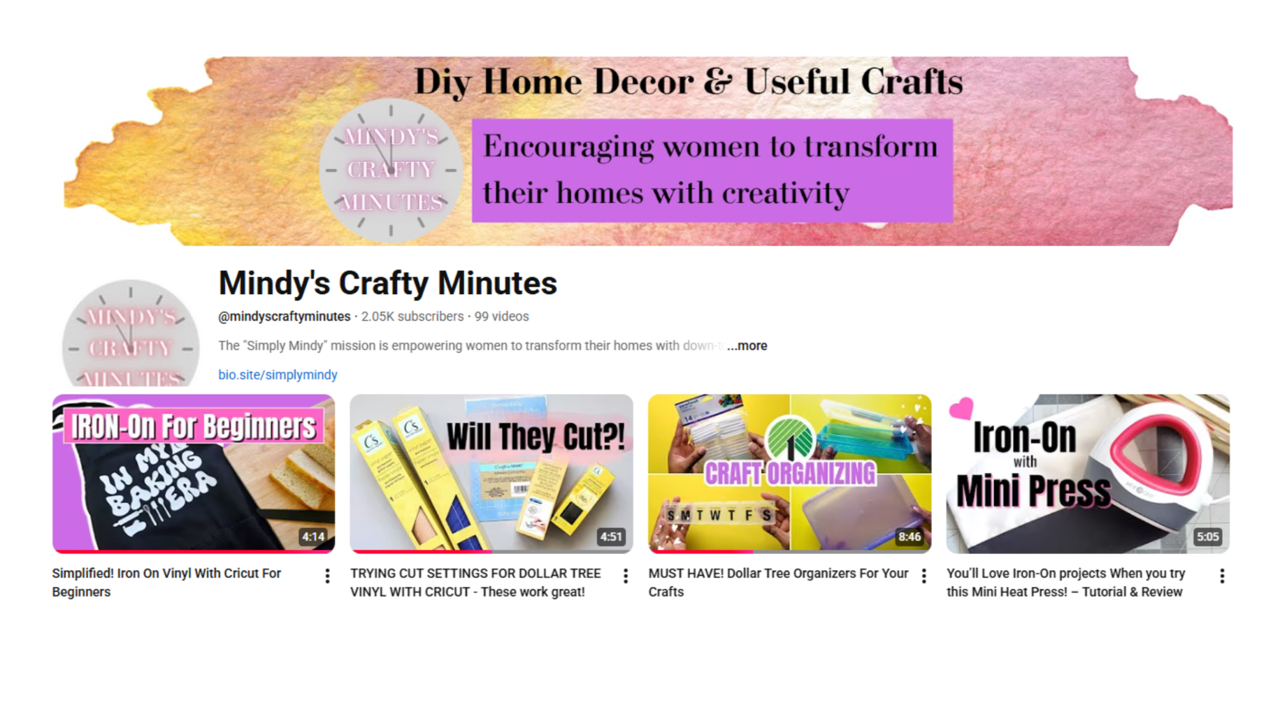 Check out Mindy’s Crafty Minutes for easy and budget friendly tutorials for diy home decor ideas, thrifty upcycling, cricut crafting and beginner sewing tips and inspiration.